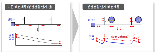 또한, 전력계통에 대한 악영향 요인으로는 “전통적 부하패턴 변화, 부하의 변동성 증가, 발전량예측 오차 증가, 과다 전력생산, 이종 분산자원간 연관성 증가, 신재생의 불규칙한 출력 증가, 배전망내 혼잡 등”을 언급하고, 전압 상승에 대해서는 “예측이 어려운 전력 유입으로 국지적으로 고전압이 발생해 전기품질을 저하시킬 수 있다.”라고 설명했다.