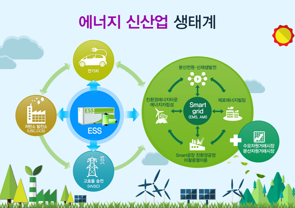 최근 에너지신산업 중에서 가장 부각되고 있는 산업은 전기를 저장할 수 없다는 통념을 바꾼 ESS 산업으로 주파수조정용 ESS가 유용성을 입증하고 있다.