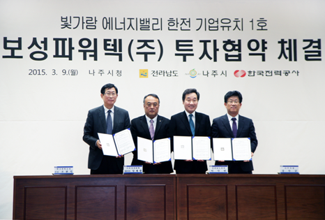 또한, 한전은 에너지밸리에서 새롭게 사업을 시작하는 보성파워텍이 조기에 안착하고 성장할 수 있도록 R&D 및 품질혁신, 해외진출 지원 등 한전이 가지고 있는 역량을 최대한 지원해 ‘기업유치 및 동반성장 성공스토리’를 만들 계획이라고 밝혔다.